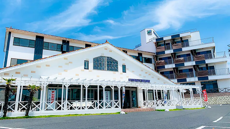 八丁浜の小浜海水浴場の近くに位置し、遠浅で透き通った海と突き抜けるような青空が広がる最高のロケーション。
