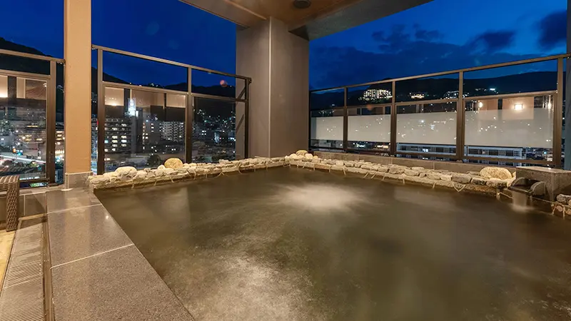熱海海上花火を楽しむ大浴場オーシャンビュー。昭和レトロな雰囲気と幻想的な南国リゾートをご堪能ください。