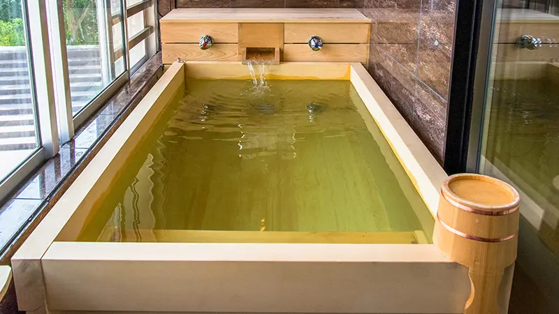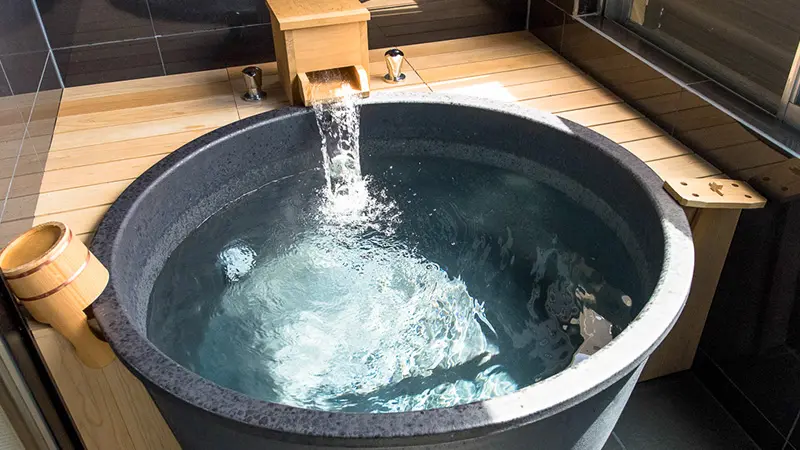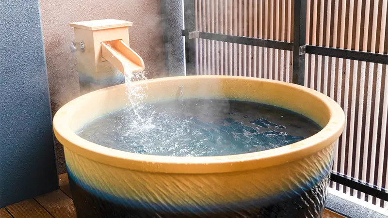 手作業で仕上げられた陶器の浴槽は、和の趣を演出し、入浴に深い癒しとくつろぎを与えてくれます。