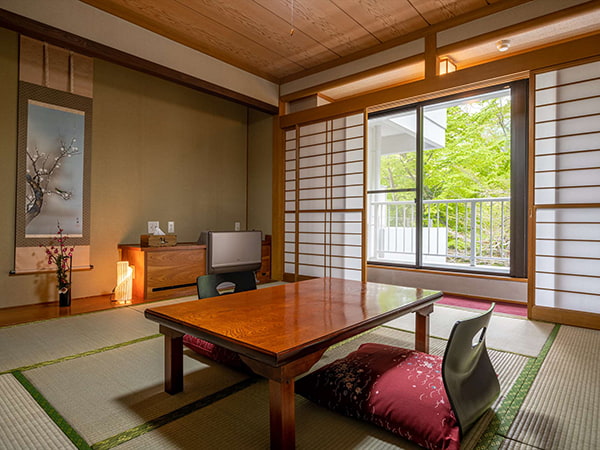 露天風呂で日々の疲れを癒し、地元食材を活かした旬の料理を味わう贅沢なひととき。 緑で覆われた渓谷と、清らかなる水の流れを擁する鬼怒川沿いに、四季折々の景色が広がります。 大切な人とゆったりと流れる時間をお楽しみください。