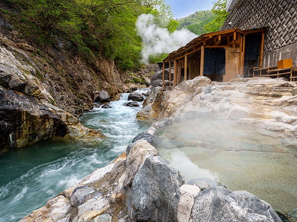 美しい温泉、地元の新鮮な食材を使った贅沢な味わいを、四季折々の美しい景観とともに。
