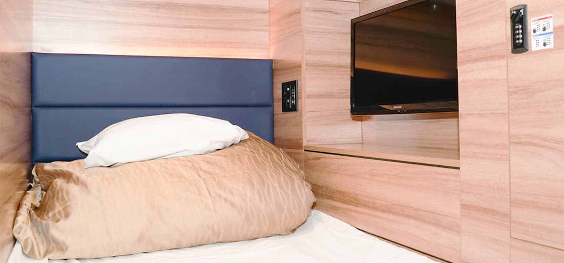 Wi-FI完備で専用TVも付いた機能的なカプセルルーム。