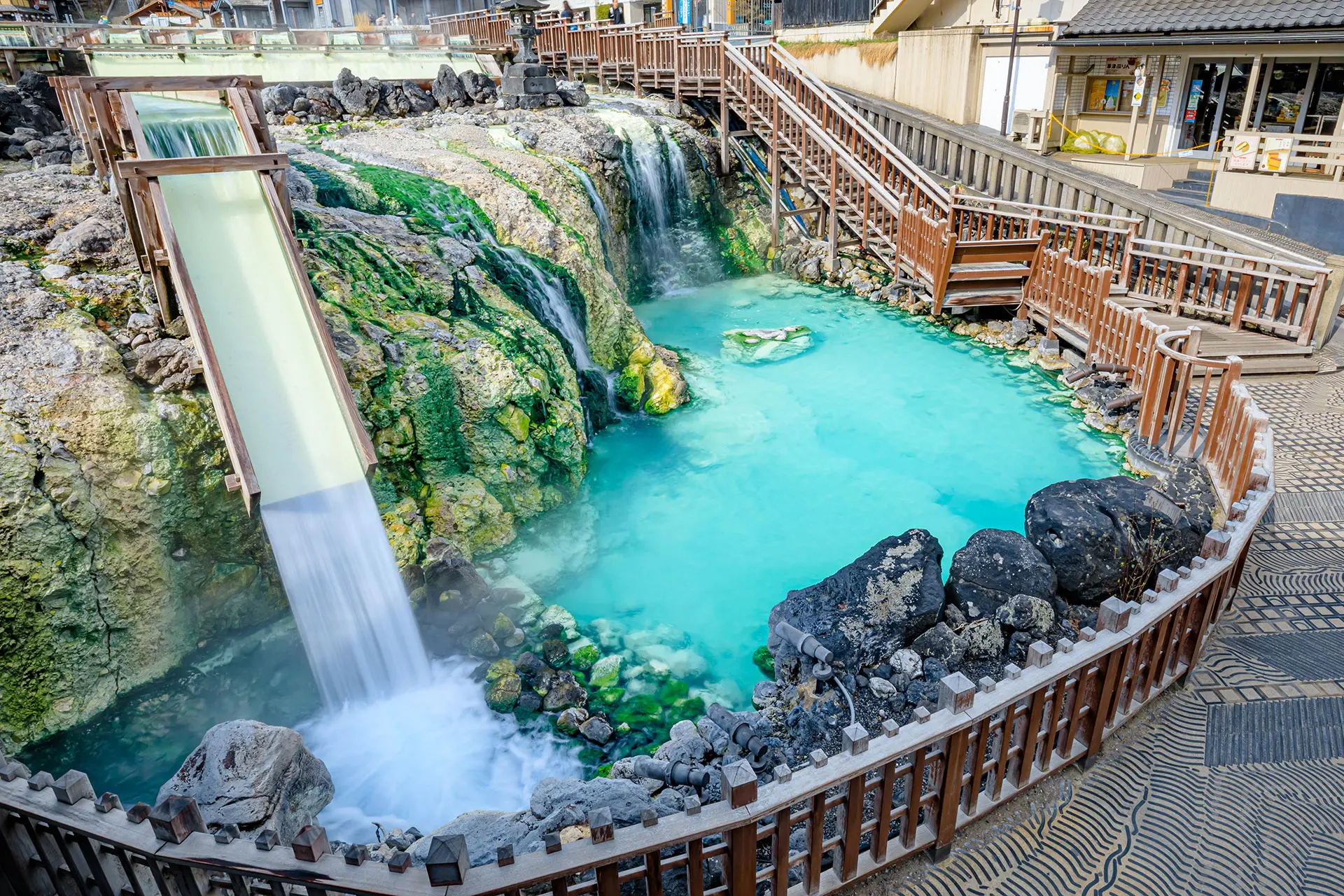 自然湧出量は日本一を誇り、毎分32,300リットル以上、
