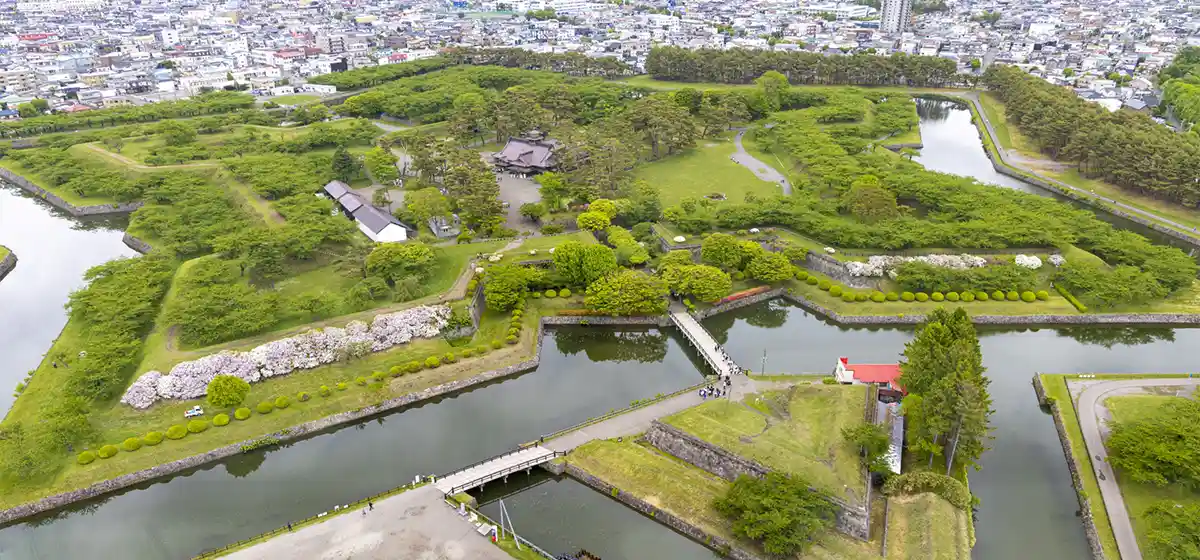 徳川幕府が幕末の北方経営の拠点として建設した、特別史跡「五稜郭」の外側に立つ高さ約107mの展望台。眼下に星形の城郭を確認でき、函館山、函館の市街地などすばらしい眺めも一望できる。