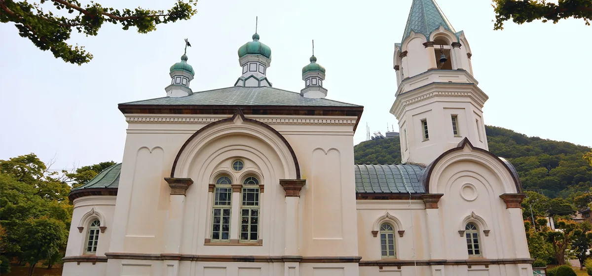 ロシア領事館付属聖堂として安政7(1860)年に建てられた日本最古のギリシャ正教会の聖堂。大正5(1916)年に再建された。聖堂内は約70枚のイコンで飾られており厳かな雰囲気が漂います。