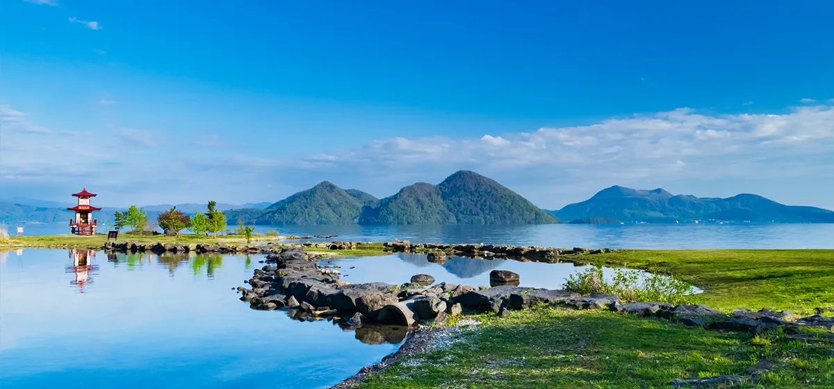 北海道の美しいカルデラ湖で、四季折々の絶景が楽しめます。