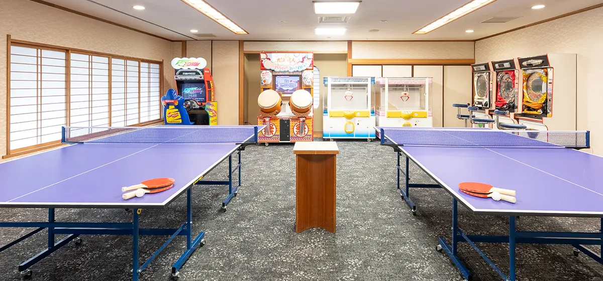 太鼓の達人やUFOキャッチャー、卓球を楽しめるエンターテインメントスペースあり!