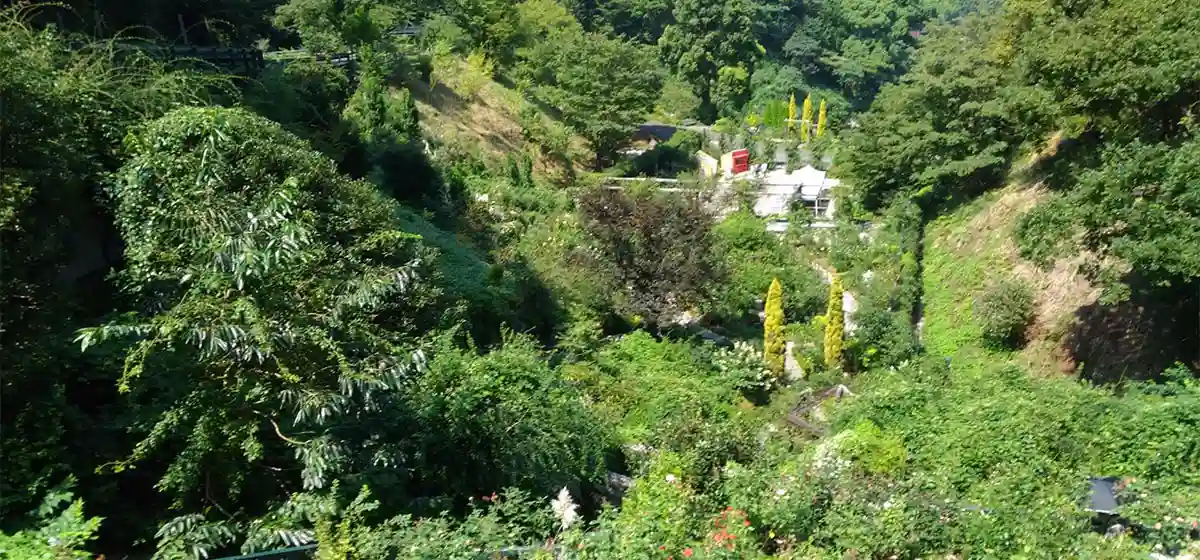 バラとハーブに囲まれた個性溢れる12のガーデンが点在し、手付かずの恵まれた自然環境と錦ヶ浦の尾根と谷が織りなす、独特な地形空間が、壮大な眺望をつくりあげています。