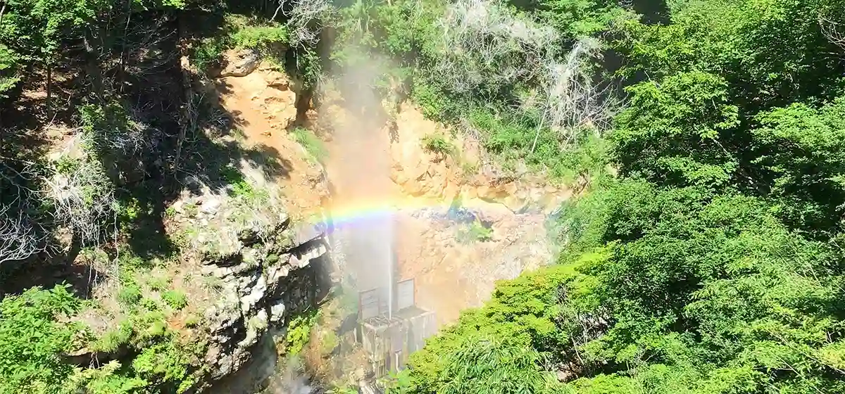 周辺には、緑溢れる豊かな大自然と岩肌鋭い渓谷とのコントラストなど、